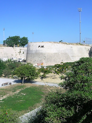 Η θέα πάνω από τον προμαχώνα είναι πανοραμική καθώς σ΄ ολάκερη τη βόρεια πλευρά του απλώνεται κάτω του η μεσαιωνική πόλη πλαισιωμένη από τη θαλασα ενώ προς το νότο απλώνεται η καινούρια πόλη και στο βάθος δεσπόζει ο Γιούχτας.